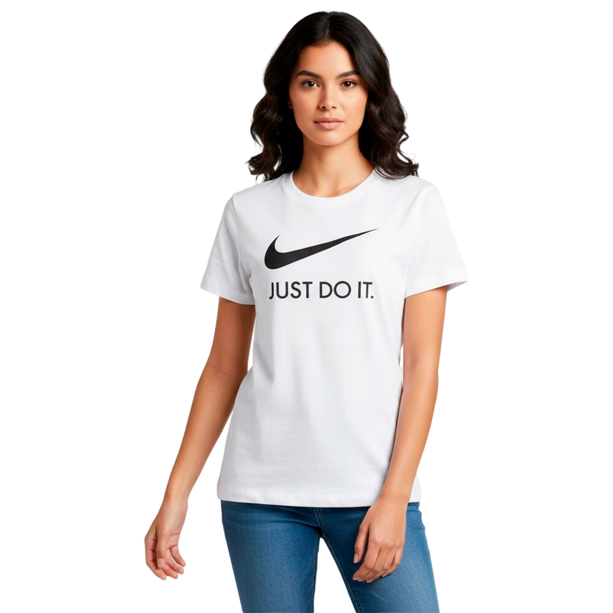 Универсальная футболка на каждый день Nike Sportwear JDI для девушек с активным образом жизни. Современные материалы дарят комфорт и ощущение легкости в течение всего дня. Фирменный дизайн футболки легко узнаваем и остается актуальным каждый сезон. Белый цвет в сочетании с графикой «Just Do It» создает Ваш собственный спортивный стиль. Футболка подойдет как для занятий спортом, так и повседневного использования. Материал джерси на основе хлопка приятно прилегает к телу и обладает высокой износостойкостью. Ткань не требует частого ухода, не растягивается и не скатывается со временем. Круглый вырез и плоские швы не доставляют дискомфорта во время движений и не раздражают кожу. Стандартный крой позволяет активно двигаться без дискомфорта. Оптимальная длина футболки и рукавов не дает ей задираться при движениях руками или наклонах.Особенности и преимущества: