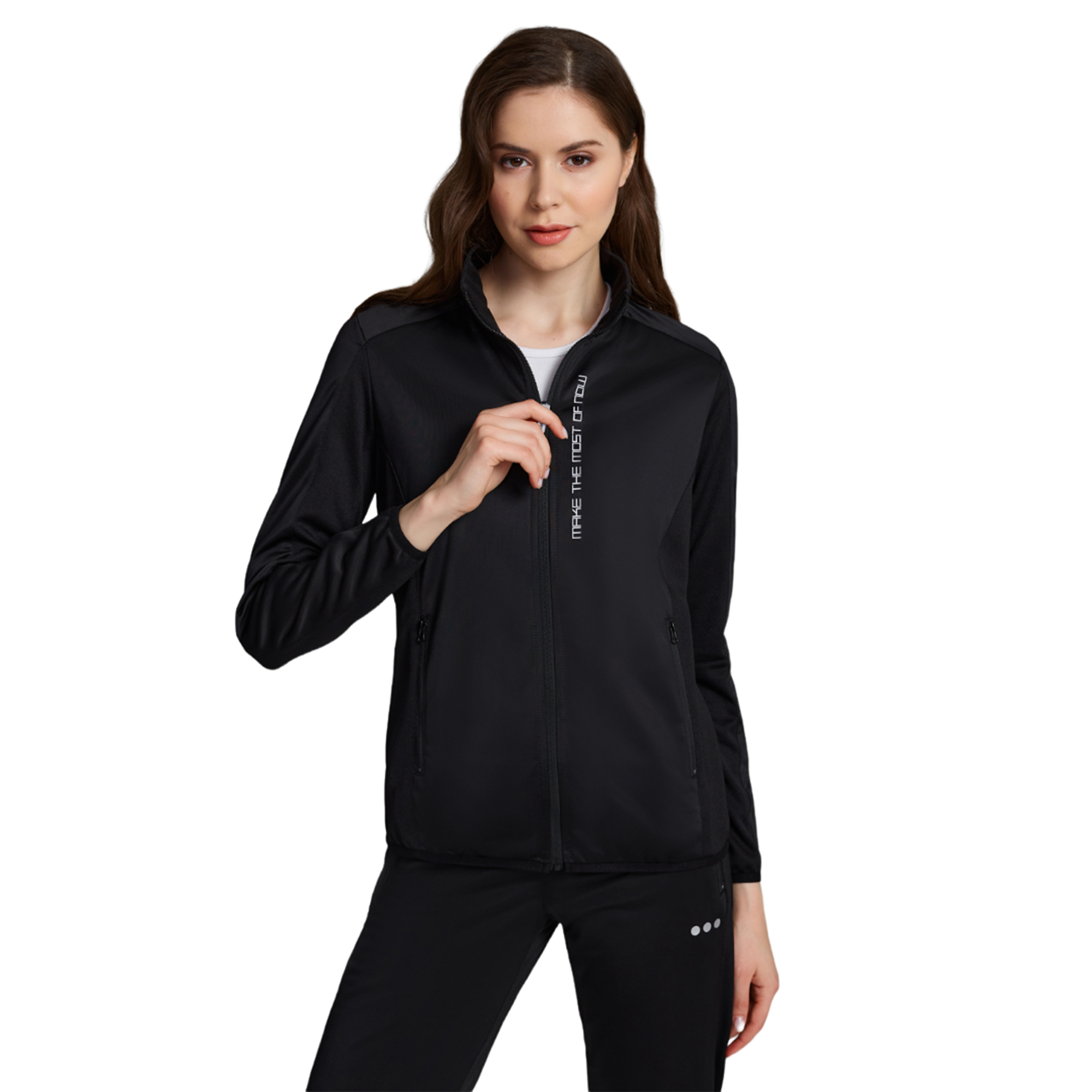 Спортивный костюм выполнен из полиэстровой ткани с изнаночным начесом. Куртка с воротником. На молниях используются навесные пуллеры с фирменным логотипом. Рукав втачной. Отрезные боковые детали полочек, рукавов и спинки выполнены из сетчтого полиэстра. Карманы куртки и брюк расположены в швах отрезных деталей с открытыми молниями. Брюки зауженные к низу. Низ куртки, низ рукавов обработаны эластичной тесьмой. По боковым сторонам брюк выполнен отрезной лампас из сетчатого полиэстра. На левой полочке и спинке выполнен термотрансфер "make the most of now". На левой половине брюк и на спинке нанесен термошеврон с фирменным логотипом.Особенности и характеристики:
