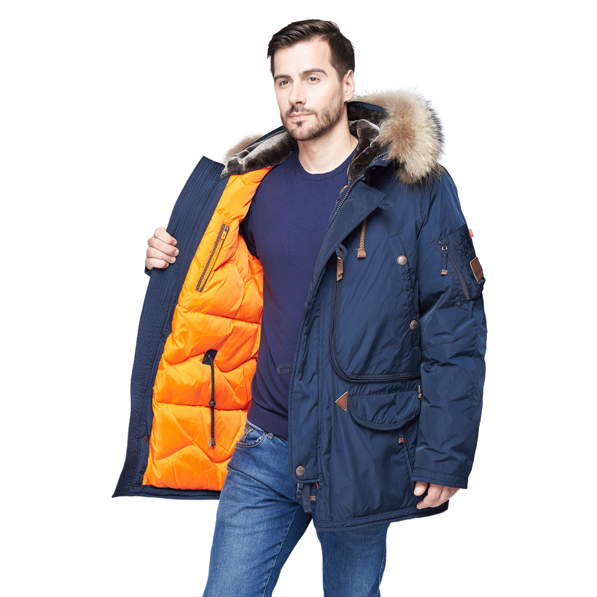 - Отстёгивающаяся опушка из натурального меха