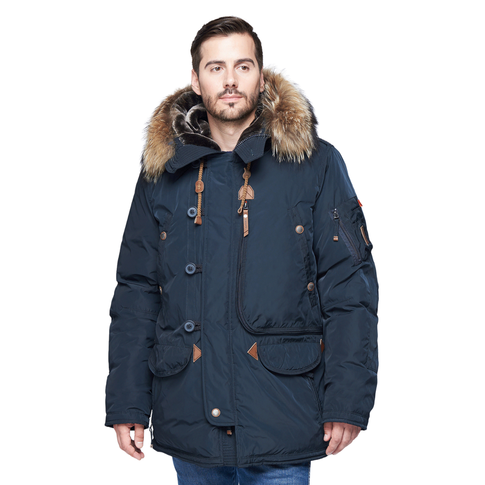 Для защиты от сильного ветра и холодов зимняя мужская куртка Vizani станет отличным выбором благодаря функциональному дизайну и использованию современных текстильных технологий и натурального утеплителя, позволяя с комфортом наслаждаться пешими зимними прогулками. Высокие ветрозащитные характеристики достигаются благодаря курточной мембранной ткани Uniqtex, снижая силу ветра за счёт микроскопических пор, разбивающий его на микропотоки и не давая холодному воздуху проникнуть под одежду. Дополнительная водоотталкивающая обработка не позволит влаге попасть во внутрь куртки. Качественный утеплитель на основе натурального пуха и пера позволяет достичь высокой термоизоляции, сохраняя комфортный микроклимат даже во время сильного ветра и морозов делая одновременно куртку мягкой и уютной. Яркая подкладочная ткань на основе полиэстера мягкая на ощупь и не будет вызывать раздражения кожи. Капюшон для дополнительного удобства отделан мехом и имеет отстёгивающуюся опушку на основе натурального меха. Двухзамковая технология в сочетании с ветрозащитной планкой даст дополнительную защиту от ветра. Для регулирования размера куртка оборудована утягивающими кулисками на талии, по низу и на капюшоне. Большое количество карманов, в том числе и внутренних, наделяет изделие высокой функциональностью, а для сохранения тепла некоторые из них отделаны мягким материалом. Также присутствует объёмный карман для хранения крупных вещей, таких как документов или планшета. Качественный прямой крой в сочетании с износостойкой курточной тканью позволяет изделию выдерживать длительное ношение, не теряя своих функциональных особенностей. Утилитарный дизайн тёмно-синего цвета с декоративными вставками из экокожи делает куртку стильной и отлично подойдёт для повседневных пеших прогулок.Характеристики: